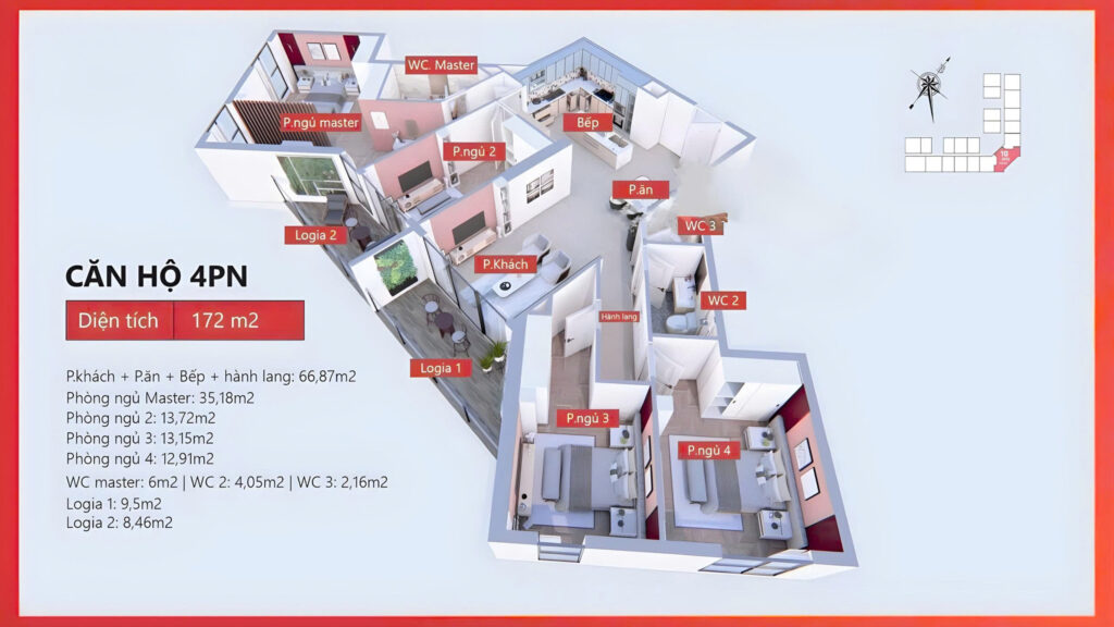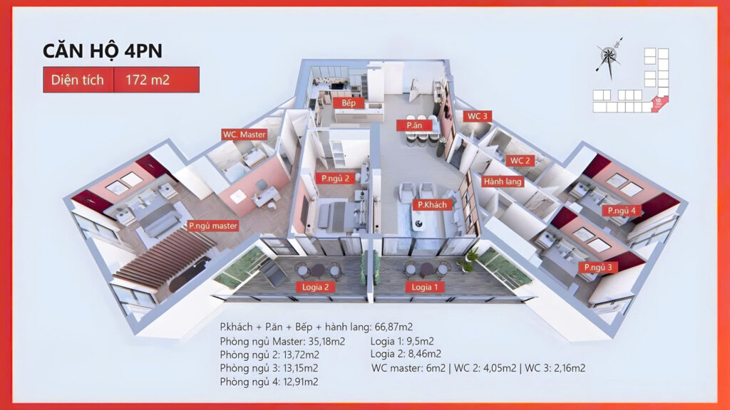 - Thiết kế chung cư: cao 42 tầng, 3 tầng hầm, tầng 6 – 29 là các căn hộ loại 2PN đến 4PN, tầng 30 – 42 là các căn hộ dòng SkyVillas diện tích lớn.
